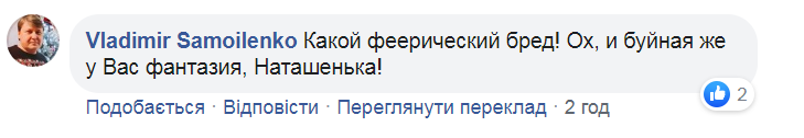"А вам в церквях-монастырях ваших не рассказывали, что врать нехорошо? Или вы какому-то другому богу втайне служите?", "Все эти всхлипы похожи на словесный бред старушек у подъезда", "Не прокурор, блогер какой-то. Наташа, вы бы делом занялись лучше", "Бухнули?", "Какой феерический бред! Ох, и буйная же у вас фантазия, Наташенька!" – пишут под опусом Поклонской.