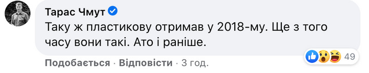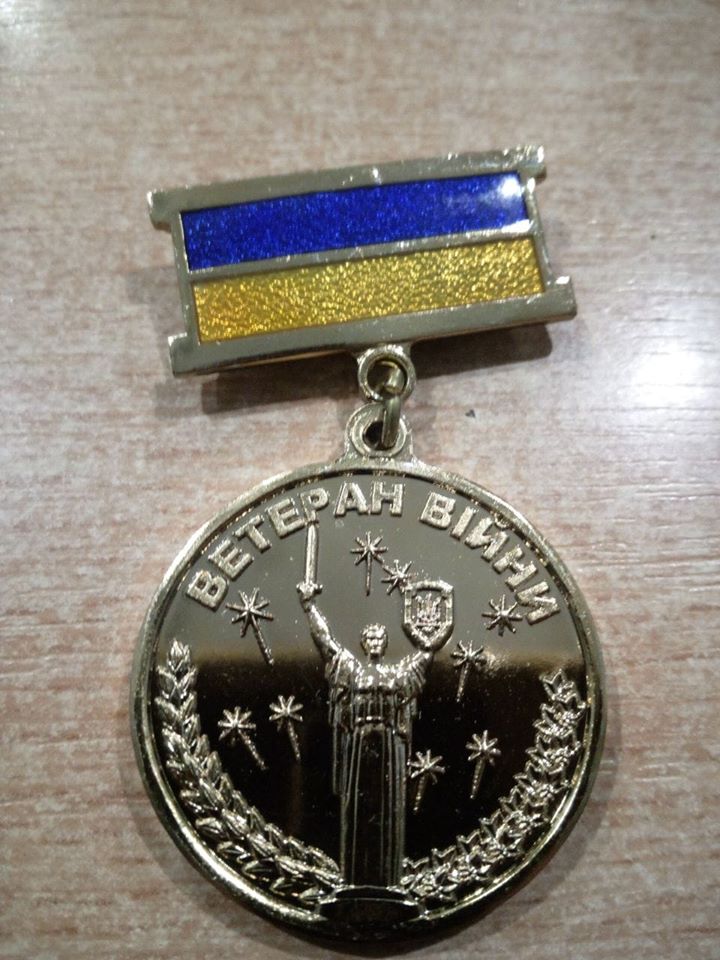 «Это нагрудный знак (медаль) участника ООС. Выдаётся в комплекте с УБД. Эта медаль теперь — пластмассовая. Да, обычный формованный пластик, покрашенный в золотистый цвет, а не металл», — пишет ветеран АТО.