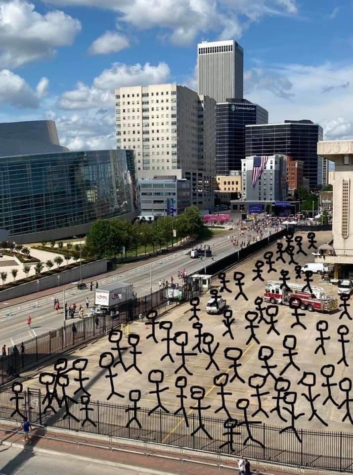 Но устроители мероприятия, да и сам Трамп, обоснованно предположили, что не каждый сможет купить билет на спортивную арену, все же – кризис и все такое. Это значит, что массы людей будут осаждать спортивную арену и не смогут в нее попасть, поскольку она будет переполненной.