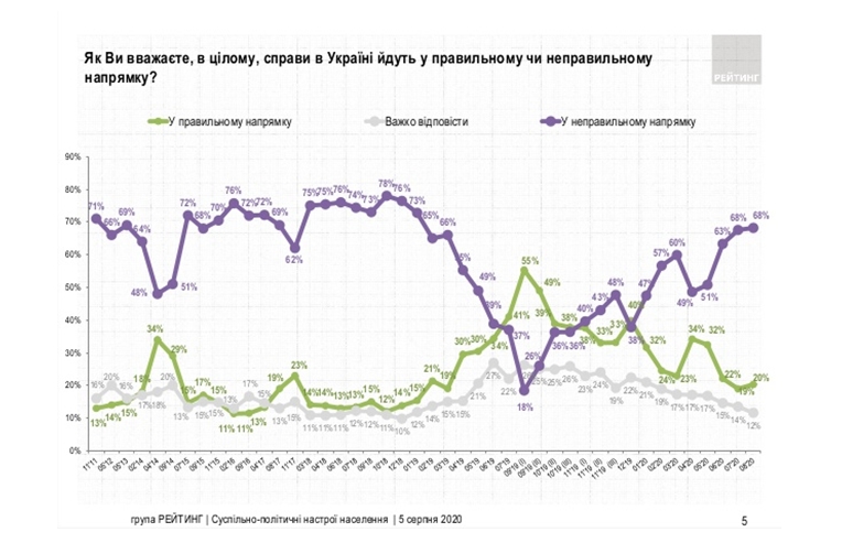 Так же увеличивается количество недовольных ситуацией в стране. Лишь каждый пятый украинец считает, что дела в Украине идут в правильном направлении.