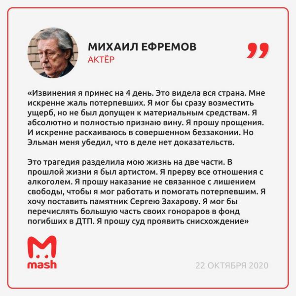 Суд смягчил приговор актеру Ефремову - он пообещал бросить пить и попросил вернуть его на сцену