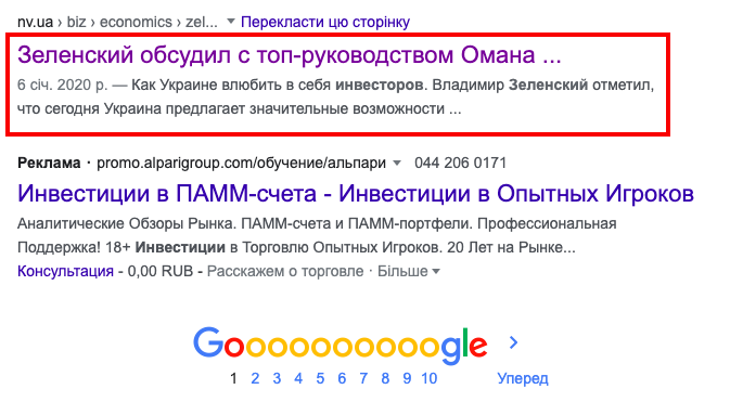 Но спустя год вот как выглядит выдача поиска Гугл по соответствующему запросу. Особенно порадовало название статьи о топ-руководстве Омана.