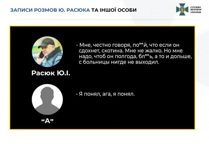 В первой аудиозаписи Расюк с другим мужчиной обсуждают организацию убийства: