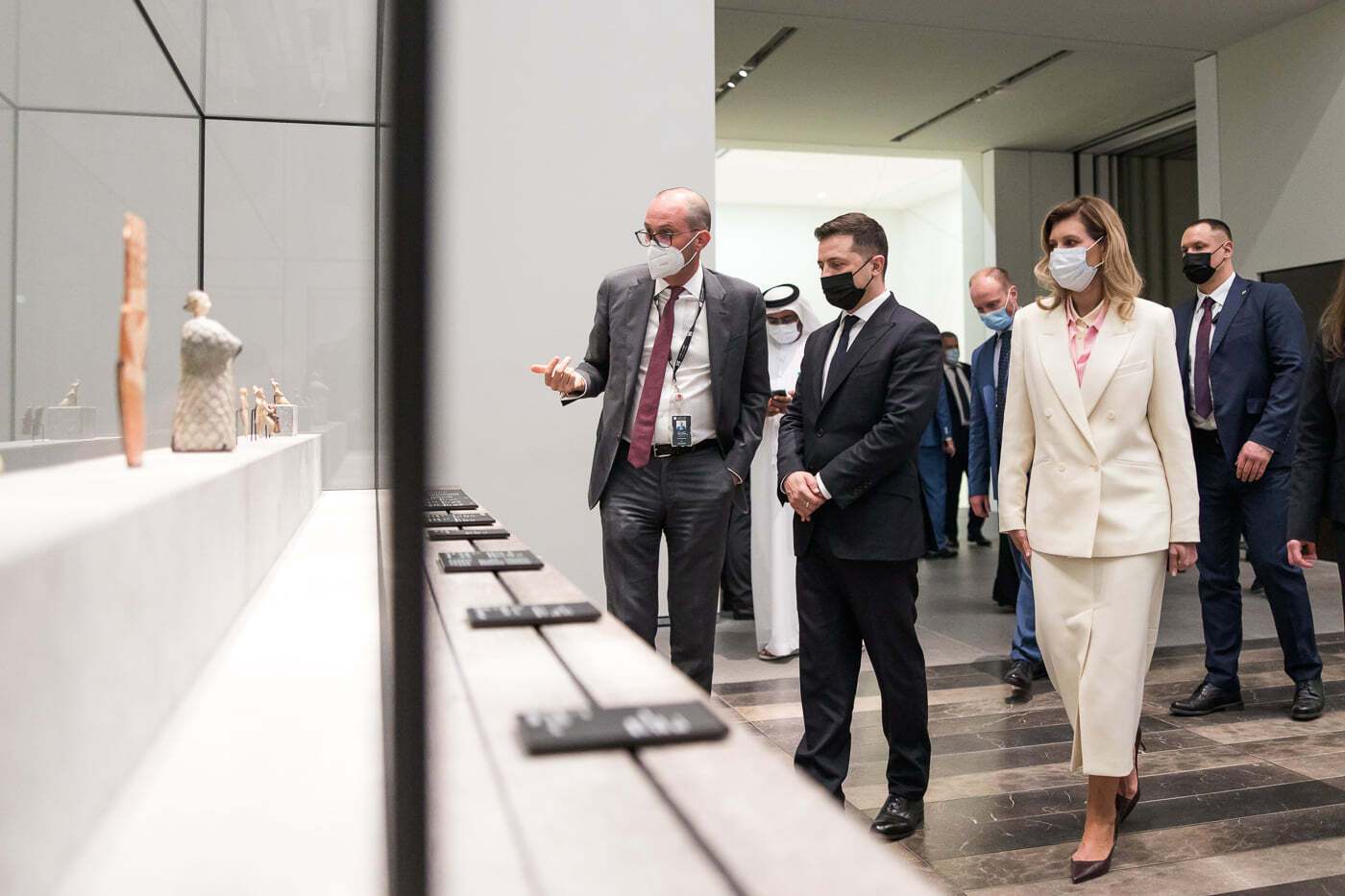 Также в рамках официального визита в страну она и ее супруг, украинский президент Владимир Зеленский побывали в Лувре Абу-Даби. Соответствующие фотографии были опубликованы на странице Елены Зеленской в Facebook.