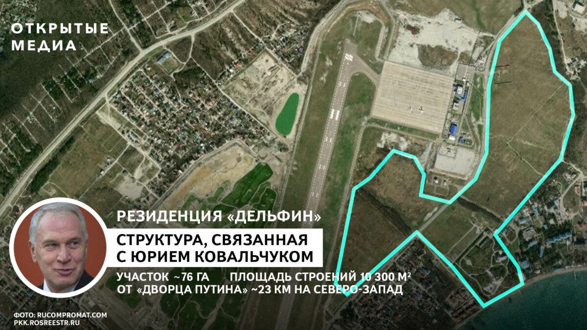 Непосредственно в самом городе Геленджик находится дом друга Путина, акционера банка «Россия», миллиардера Юрия Ковальчука с видом на море, площадь которого составляет 6752 метров квадратных, а на крыше здания имеется бассейн.