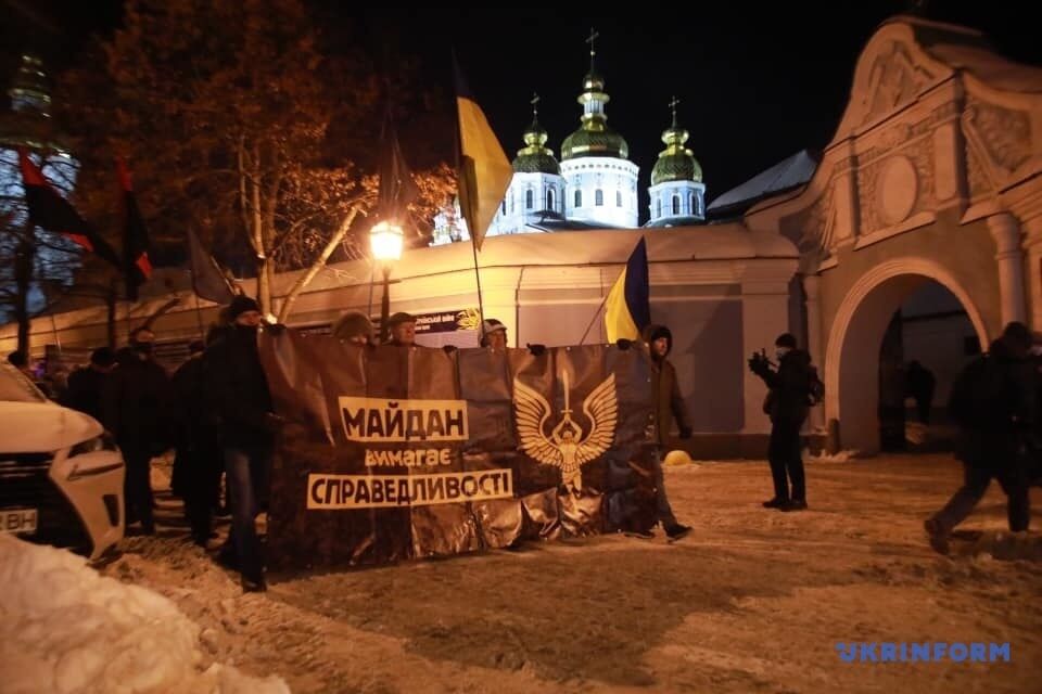 Люди собрались на Михайловской площади и закончили ходу возложением цветов и зажжением лампадок на Аллее Небесной Сотни.