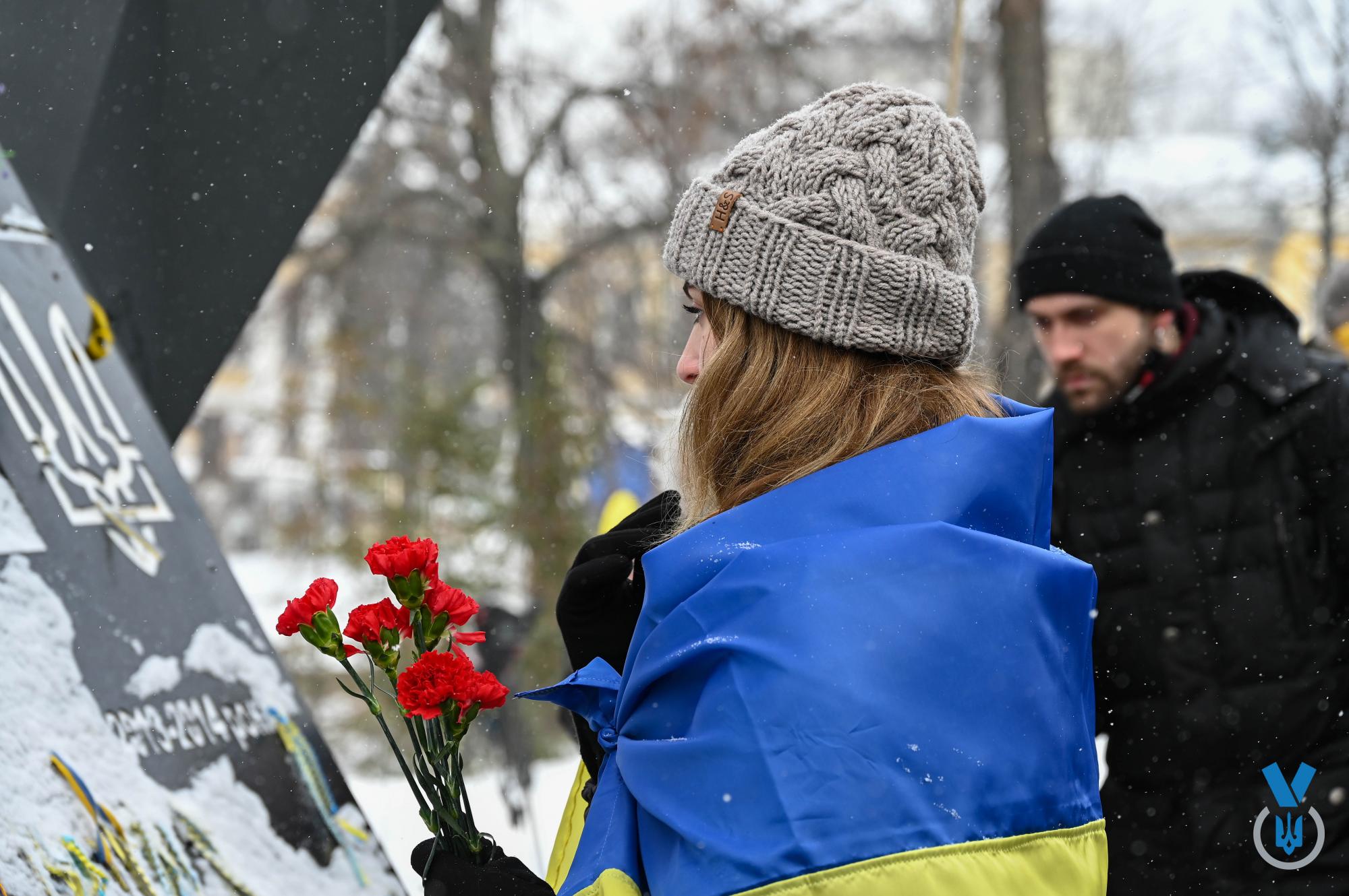 Участники акции чествовали подвиг Небесной Сотни и всех борцов, отдавших свою жизнь за независимость Украины, отстаивая права и свободы человека.