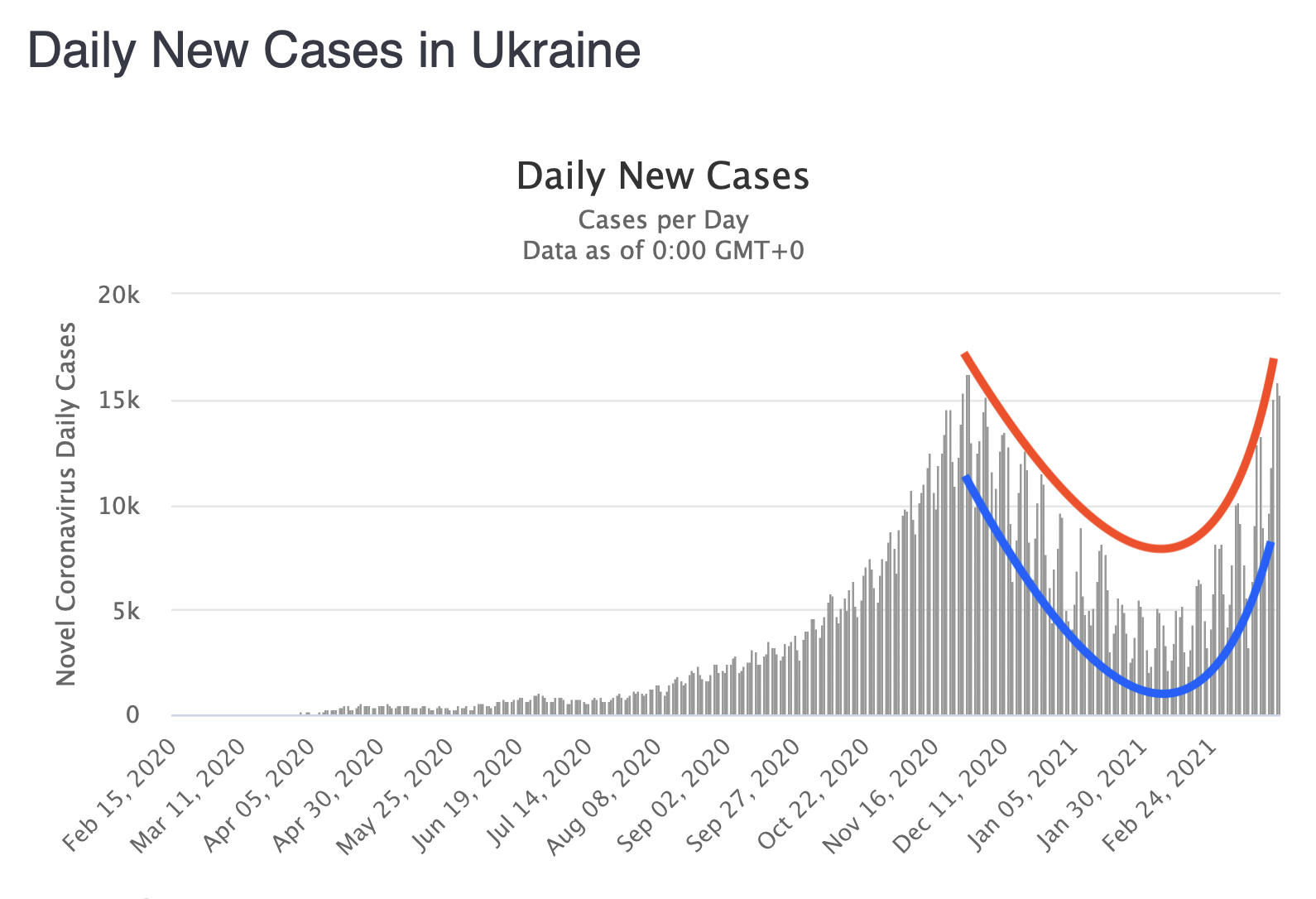 Далее – открываем график (на любой вкус) суточного прироста инфицированных и наблюдаем его «пилообразную» форму, где нижняя часть его приходится на три дня недели – субботу, воскресенье и понедельник (синяя линия на графике).
