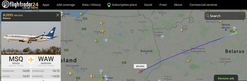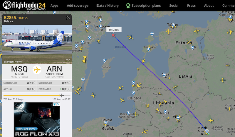 Тем не менее, пролет белорусских самолетов в небе ЕС и Украины пока не перекрыт. Так в первой половине дня был замечен белорусский аэроплан, который вылетел из Минска в Стокгольм и пролетел в небе Литвы и Латвии.