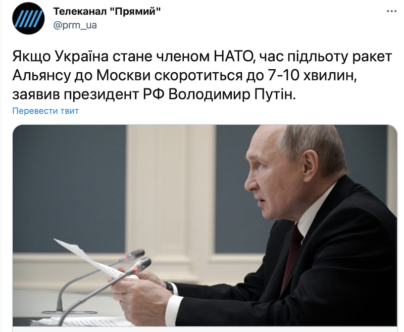 С его слов, если Украина вступит в НАТО, подлетное время ракет с территории Украины до Москвы составит «всего» 7-10 минут и с этим он никак не может смириться, даже с учетом применения усиленных памперсов для взрослых.