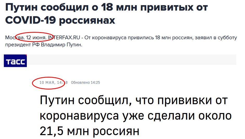Видимо, в Кремле решили, что победить его со счетом 2:0 все же лучше, чем 1:0 и потому, аккурат 12 июня, победили его еще раз. И что характерно, ровно год назад, когда победили КОВИД в первый раз, 12 июня у них заразилось 6 615 пациентов, а ровно через год после многомиллионной вакцинации и победы над вирусом, у них сегодня 13 510 зараженных. Победа? Не то слово!