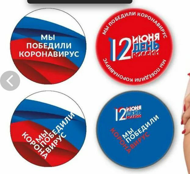 То есть, они КОВИД побороли еще год назад, без вакцины, а просто на силе воли Путина, который вышел из бункера и смело сказал: «Вирус, стой! Раз! Два!» И по этому поводу выпустили массу наглядной агитации, вот значки такие, плакаты и прочее.
