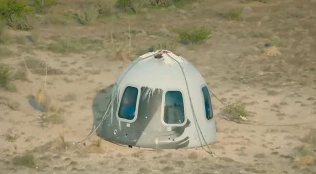 Ну, что, Безос, получается, первый частный миллиардер, побывавший в космосе лично. Триста пятьдесят одна тысяча футов. Сто семь километров. Линия Кармана преодолена. В отличие от Брэнсона.