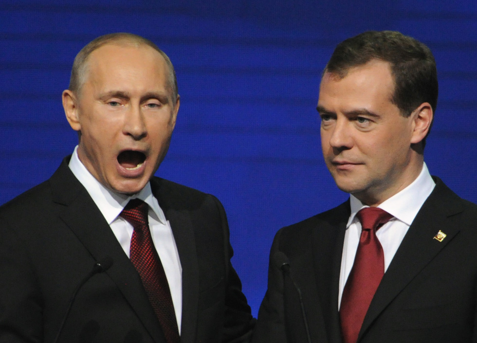 Медведев объявил, что «Единой России» «не стыдно смотреть в глаза людям», а Путин призвал «Единую Россию» «объединить общество для достижения созидательных целей»