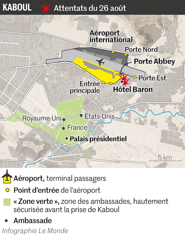 Внутрь периметра можно попасть через три контрольных пункта, на которых у беженцев документы проверяет сначала представители талибана, а потом – американские военнослужащие. Насколько можно понять, первый взрыв (около 17:00 по Киеву) произошел прямо на КПП. Его устроил смертник с поясом шахида.