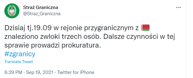 В воскресенье, 19 сентября, недалеко от границы между Польшей и Беларусью были обнаружены тела трех человек. Рядом с ними находились еще трое детей, возрастом от 7 до 15 лет.
