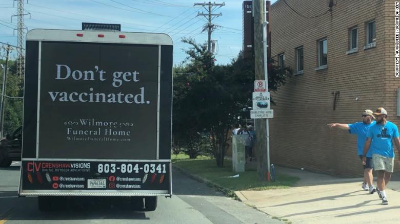 Черный грузовик "Похоронного бюро Уилмора" объехал американский город Шарлотт с весьма необычным слоганом на кузове. Вместо традиционных утешительных слов на нем красовался слоган: "Не вакцинируйтесь", пишет CNN.