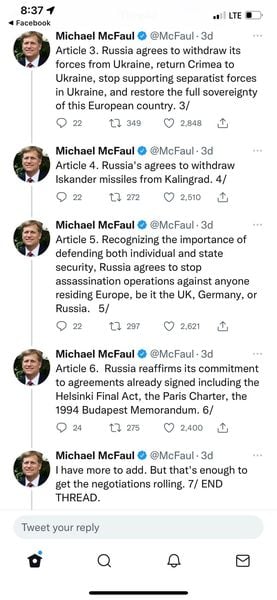 «Теперь, когда Путин опубликовал свои идеи относительно Соглашения о европейской безопасности, позвольте мне внести в проект соглашения несколько дополнительных пунктов: