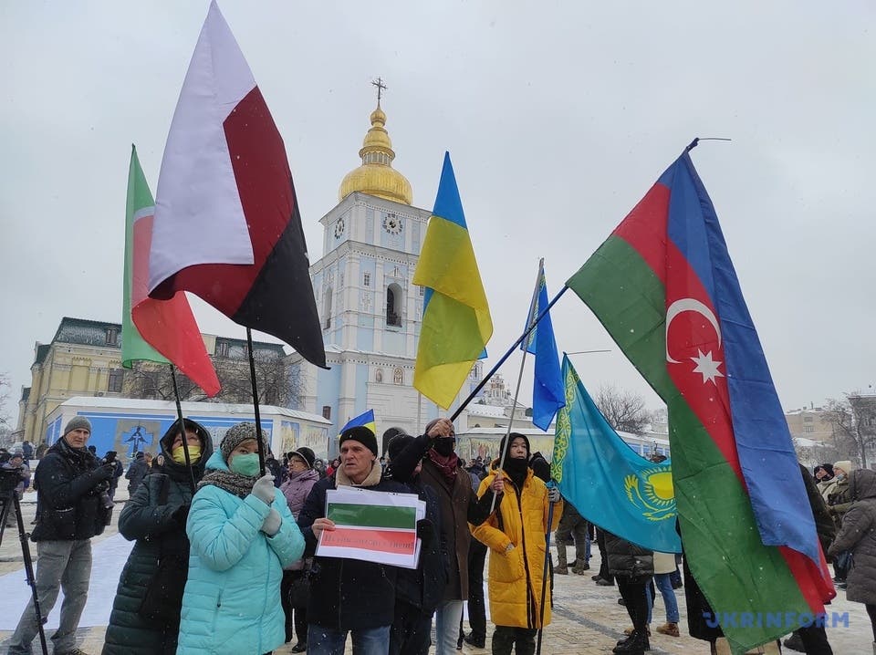 В Киеве на Михайловской площади прошла акция под названием «Скажи Путину — нет», которую организовали перед переговорами Запада с Россией по поводу Украины. Об этом сообщает национальное агентство «Укринформ».