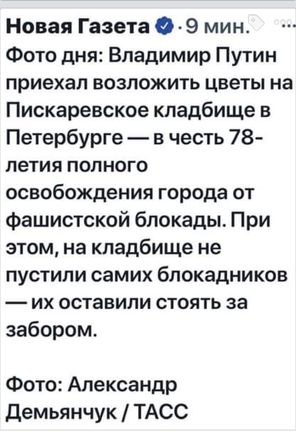 Би-би-си спросила Пескова, знает ли президент и как относится к тому, что из-за его визита на Пискаревское кладбище туда не пускали петербуржцев, а пожилым людям пришлось стоять на морозе за оградой.
