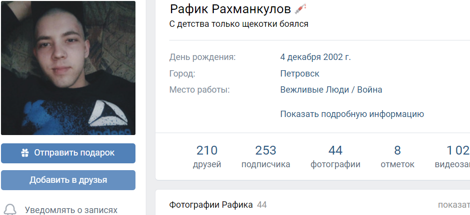 Первый – 20-летний Рафик Рахманкулов, уроженец Петровска (Саратовская область). Второй – 27-летний уроженец Дагестана (Кизилюрт) с позывным «Мгомд Мгомдов».