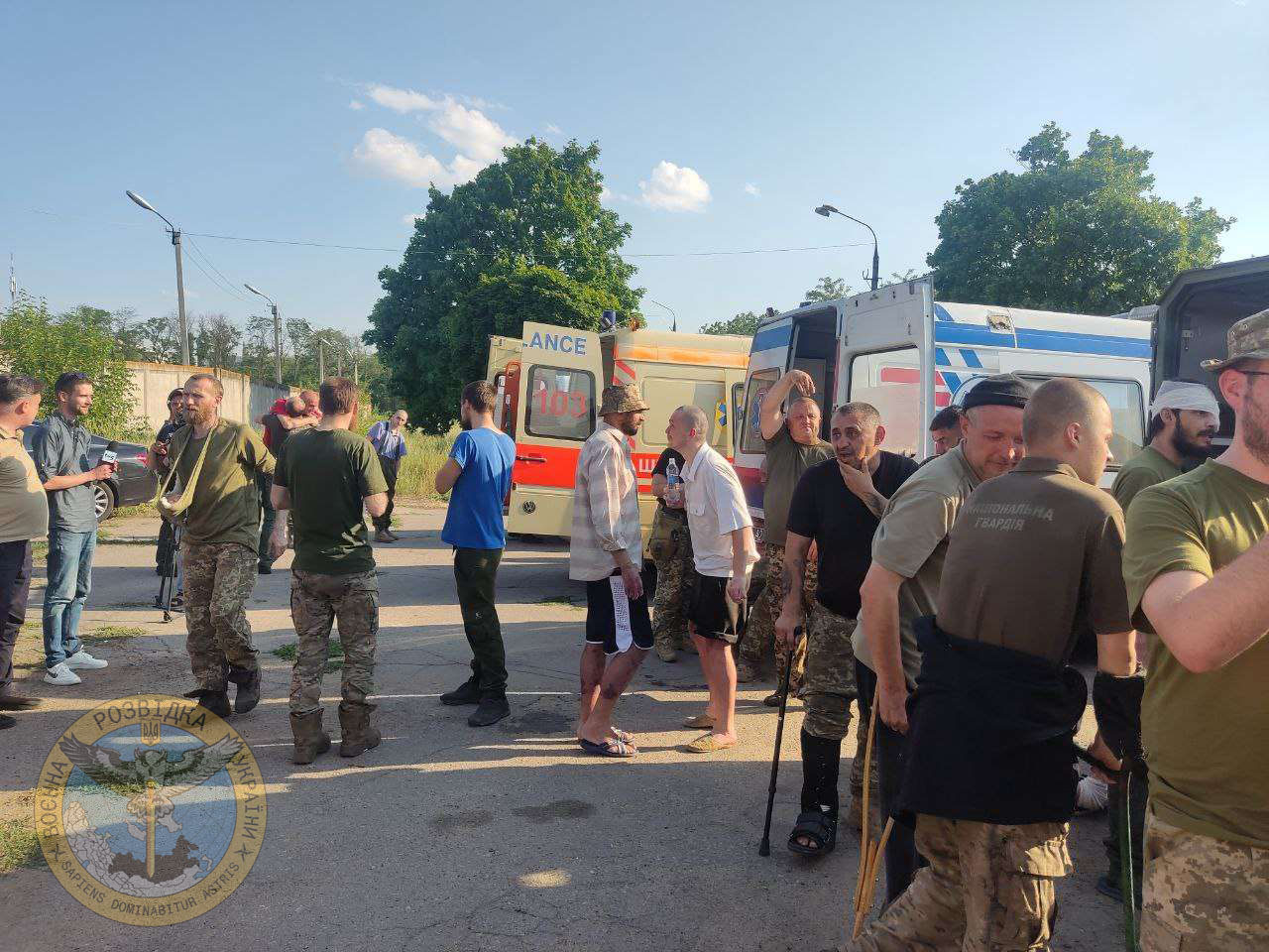 Всего, по данным ГУР МО, были освобождены 59 бойцов Национальной гвардии Украины, 30 военнослужащих Военно-морских сил, 28 – Вооруженных сил Украины, 17 – Государственной пограничной службы Украины, 9 – Территориальной обороны и один сотрудник Национальной полиции Украины.