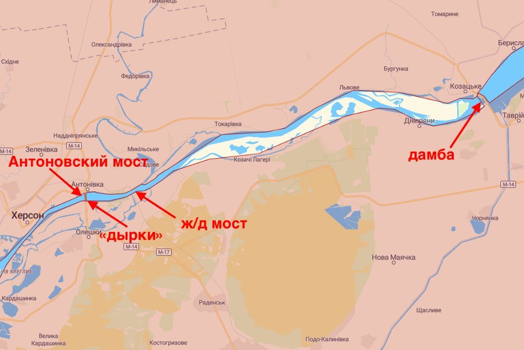 Антоновский мост — это один из двух пунктов пересечения через Днепр, по которым РФ может снабжать или отводить свои войска на оккупированные территории к западу от реки.