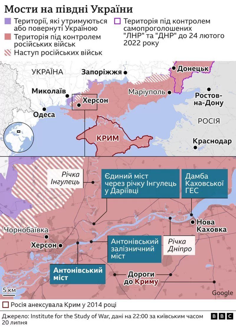 "ВСУ нанесли удар по мосту через реку Ингулец в Херсонской области, применив американскую РСЗО HIMARS. Удар произошел сегодня около 5 утра. По предварительной информации, семь ракет РСЗО HIMARS попали по дорожному полотну моста. Мост, несмотря на полученные повреждения, устоял, по нему сохраняется движение. О жертвах информации нет", - пишут оккупанты в Telegram-каналах.