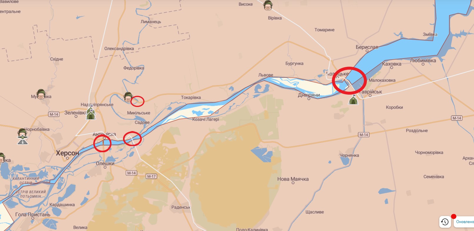 Для российской группировки на правом берегу Днепра есть четыре ключевых моста – Антоновский железнодорожный и автомобильный, возле Каховской ГЭС и Дарьевский через Ингулец. По каждому из этих мостов ВСУ наносят удары.