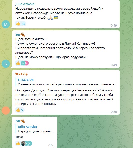 В то же время, в проукраинских Telegram-сообществах Херсона люди делятся своими подозрениями, что эвакуация, объявленная оккупантами, может быть попыткой прикрыться мирными жителями во время наступления ВСУ.