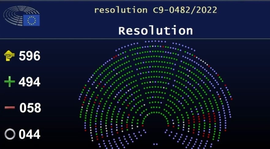 Соответствующее решение поддержали 494 евродепутата, 58 были против, еще 44 воздержались.