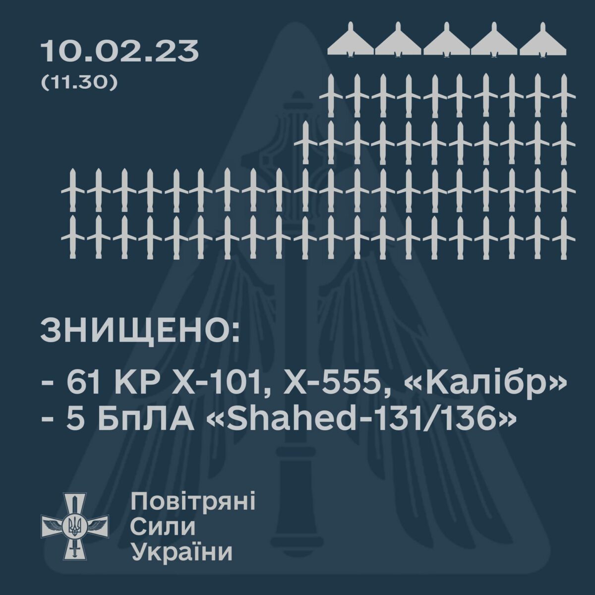 Как сообщают Воздушные силы Вооруженных сил Украины, 10 февраля РФ нанесла массированный ракетный удар по объектам критической инфраструктуры Украины.