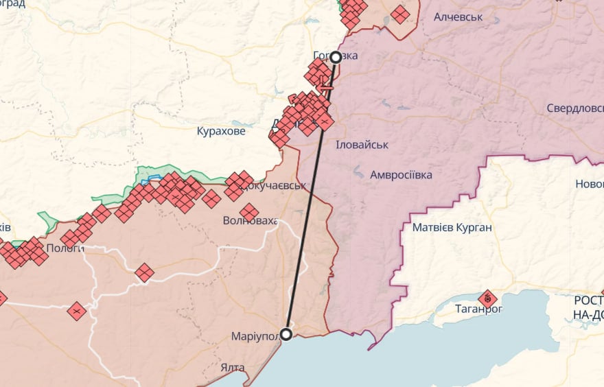 От Мариуполя до Горловки около 135 км.