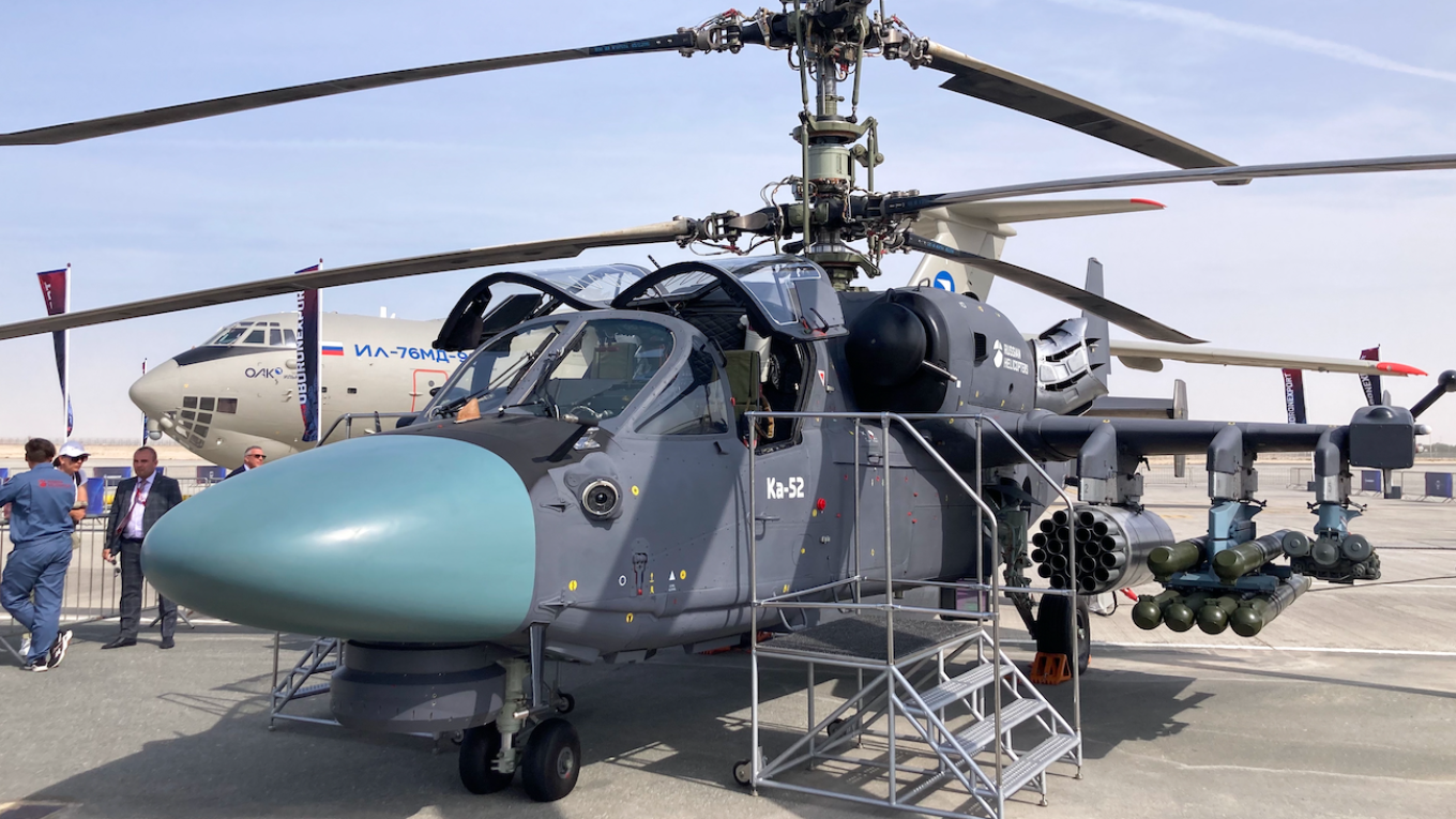 «…привезли 250 образцов вооружений и техники. Среди них — тяжелый транспортный самолет Ил-76МД-90А (Э), истребители Су-35С, вертолеты Ка-32А11М, Ми-171А3 и «Ансат», ракеты класса «воздух — воздух» РВВ-МД2 и РВВ-БД, крылатые ракеты Х-69. Концерн «Алмаз-Антей» выставлял зенитно-ракетные системы С-350Е «Витязь» и «Викинг».