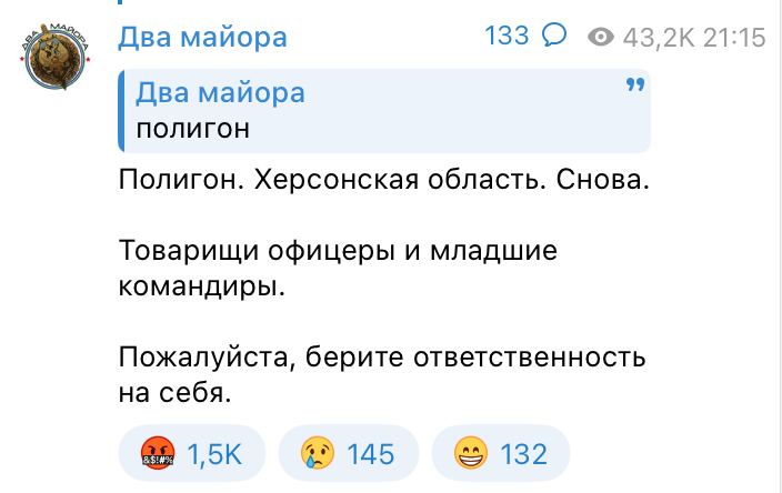 "Снова полигон! Теперь по скоплению оккупантов ударили в Херсонской области", - написал он, ссылаясь на российские паблики.