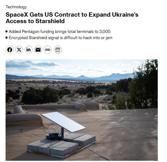 Компания SpaceX подписала контракт с Пентагоном на расширение доступа Украины к более защищенной, милитаризованной версии своей спутниковой сети Starlink. Об этом пишет Bloomberg.