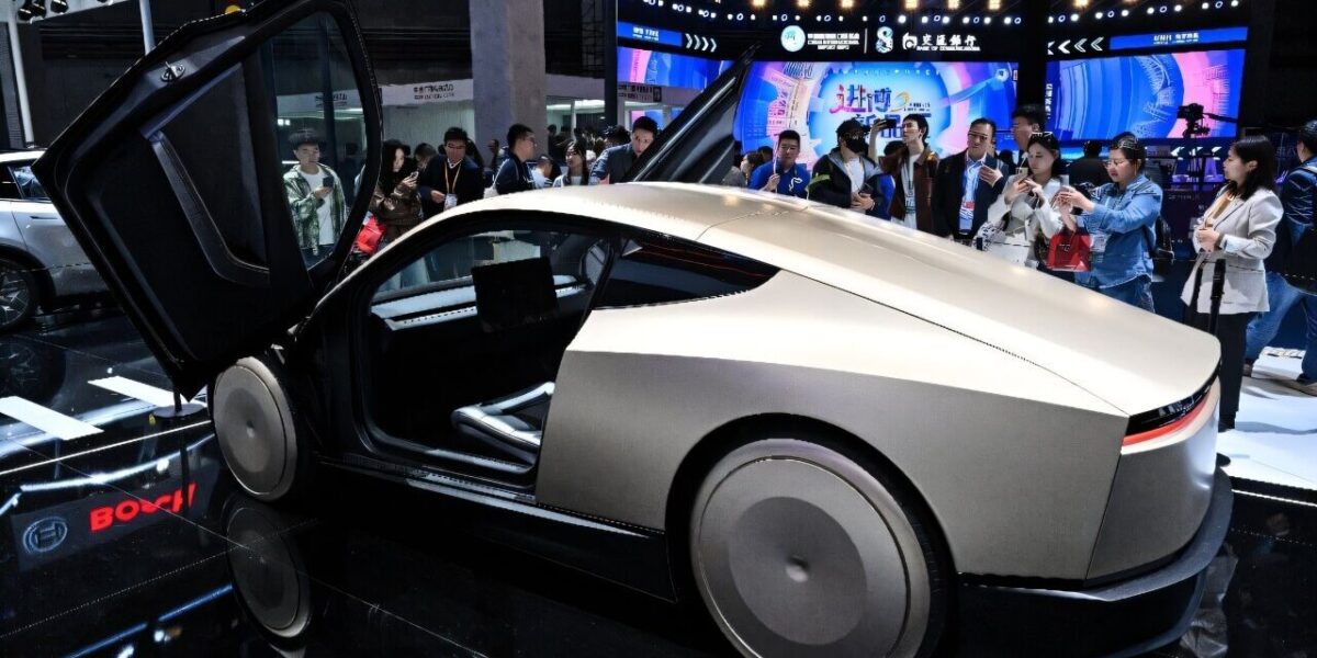 Угловатые формы автомобиля напоминают Cybertruck, но в миниатюре. Две массивные двери поднимаются вверх по принципу «крыльев чайки», открывая широкий проход в салон. Передняя часть лишена решетки радиатора — вместо нее установлена цельная панель с тонкой светодиодной полосой по всей ширине.